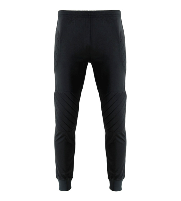 Brankářské kalhoty s prošívanými díly všitými na stranách a prošívanými kolenními nášivkami. Elastický pas s vnitřní stahovací šňůrkou. Spodní lem s manžetou.