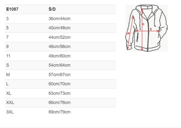 Mikina s kapucí a klokaní kapsou. Elastický průkrčník, lemování rukávů a spodního patentu v žebrovaném úpletu 1×1. UPOZORNĚNÍ-MIKINY V DĚTSKÉM PROVEDENÍ JSOU DODÁVÁNY BEZ ŠŇŮREK V KAPUCI. MATERIÁLOVÉ SLOŽENÍ MIKIN JE BUĎ 65% POLYESTER+35% BAVLNA NEBO 50% POLYESTER+50%BAVLNA.